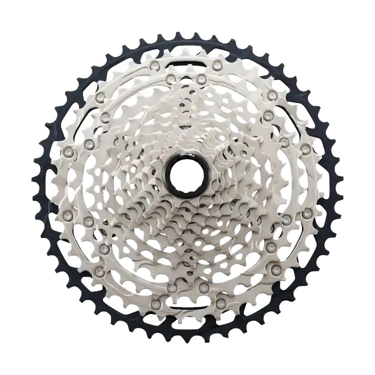 - Grupo Shimano Deore 1×12 velocidades que garantiza cambios de marchas rápidos y eficientes.