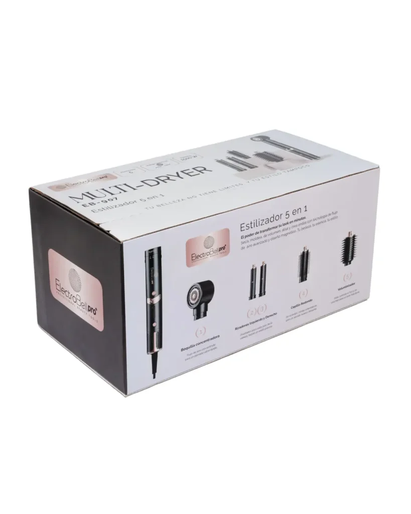El Secador 5 en 1 Multidryer Profesional EB-907 es la herramienta definitiva para transformar tu cabello. Este versátil dispositivo te permite secar, alisar, dar volumen y crear rizos perfectos con un solo equipo. Su diseño inteligente y sus funciones avanzadas lo hacen ideal para cualquier estilo que desees lograr, ofreciendo resultados de salón en casa.